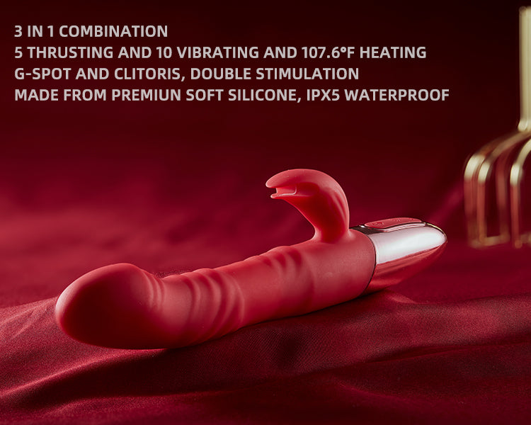 Acmejoy 3-IN-1 Retractable Burgundy Heated Vibrator